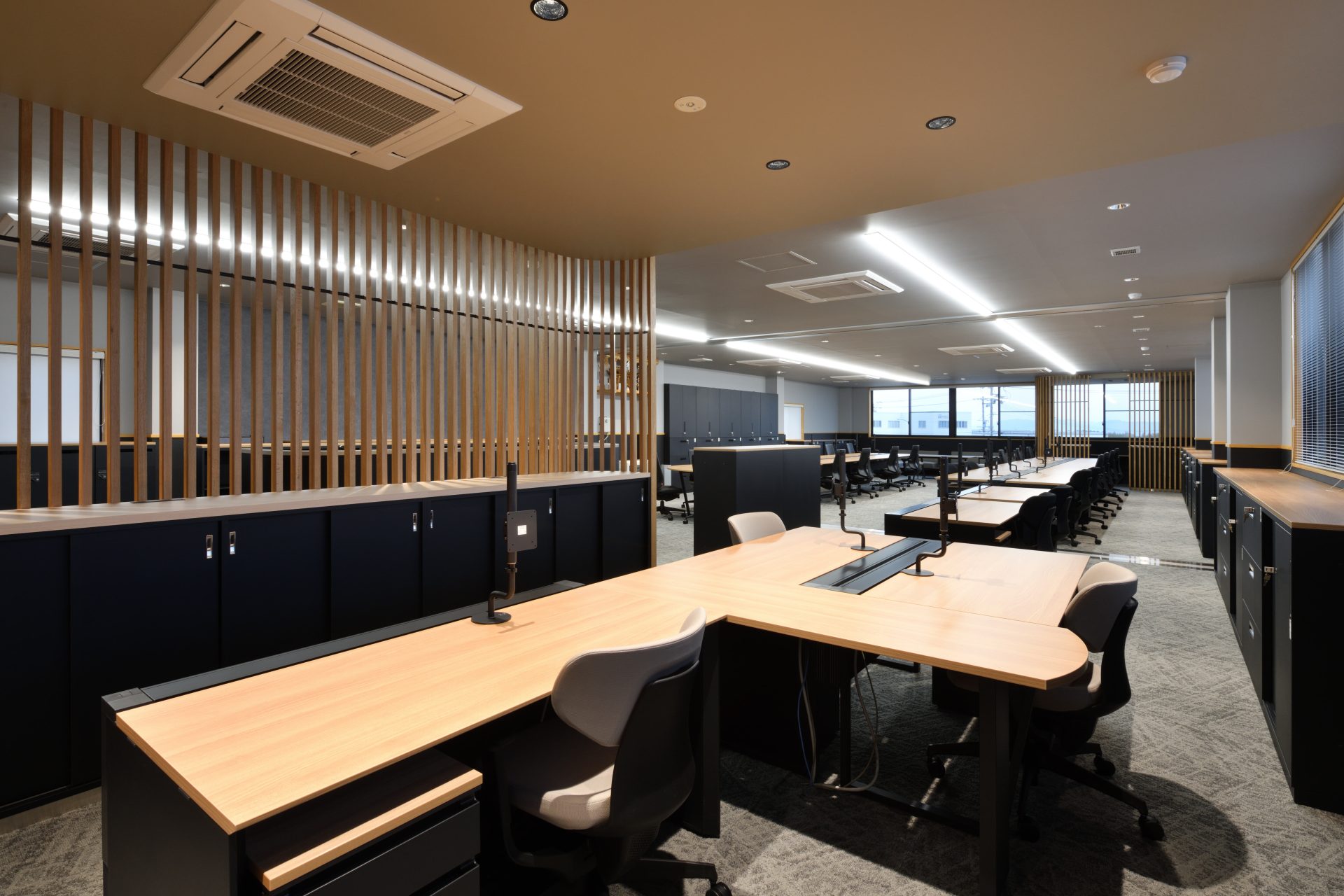 この統一感ある空間が実現したのは、小野社長の強い想いのもと、建設にあたって意見を一つの方向に集約してくださった松本電気工業の皆様、そして居ながら改修という条件の中、調整を重ね、時には夜間や土日にも施工にあたってくださった松本土建をはじめとする施工業者の皆様のお力によるものです。心より感謝申し上げます。